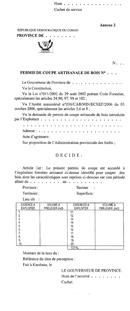 2.      Permis de coupe artisanale,