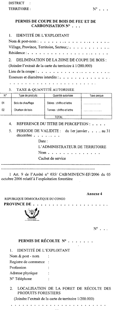 3.      Permis de coupe de bois et de carbonisation,