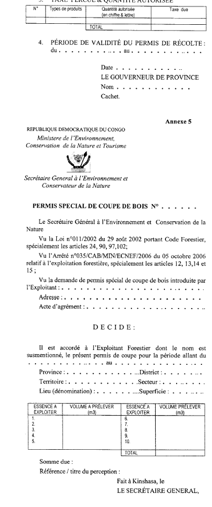 5.      Permis spécial de coupe,