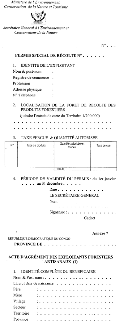 7.      Acte d'agrément d'exploitant forestier artisanal,